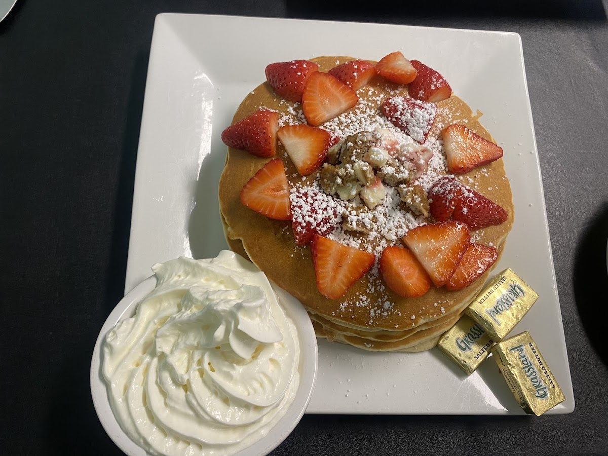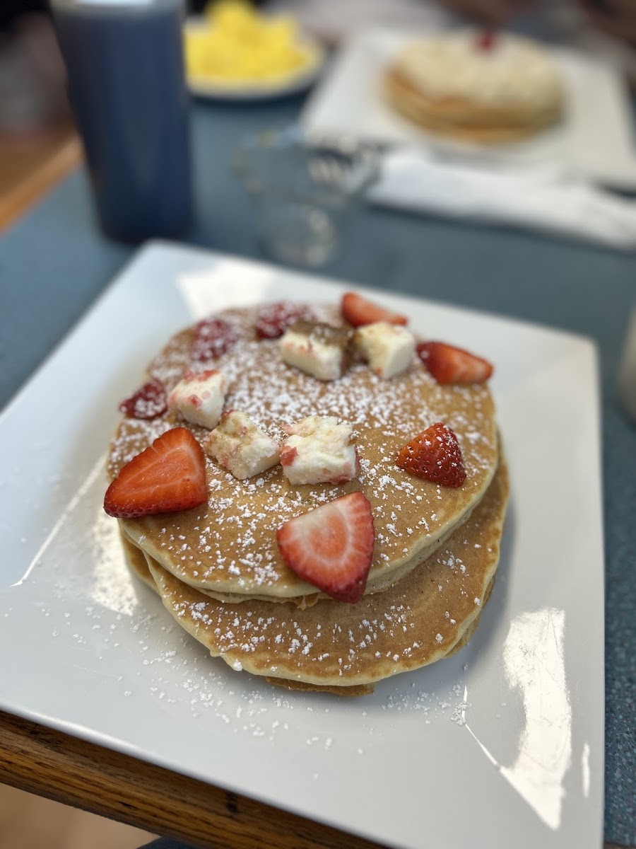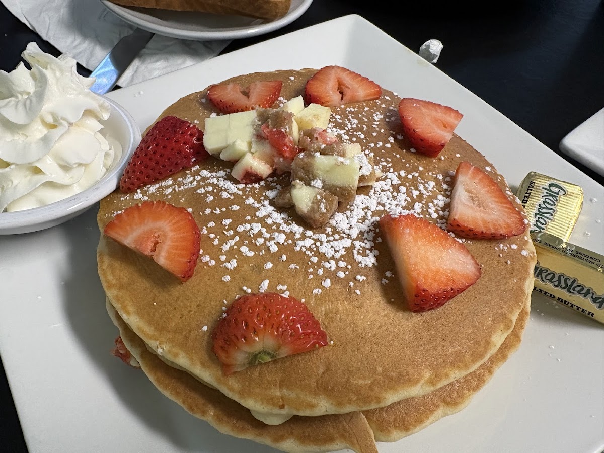 We enjoyed the breakfast special today, upgraded to blueberry pancakes. All of it was absolutely delicious!! Great service! They were out of sausage links today. We will definitely be back to try all the other wonderful variety of pancakes and breakfast meals!! *charged for extra plate, meal share